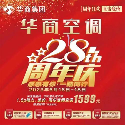 2023年6月16日-18日,華商空調(diào)28周年店慶活動(dòng)火爆開搶,輝煌成就,感恩一路相伴!1995-2023相隨到永久,華商集團(tuán)以專業(yè)創(chuàng)造價(jià)值,“買空調(diào)到華商”不再是一句口號(hào)!我們不僅為顧客們準(zhǔn)備了豐盛的糕點(diǎn)和水果,還有豐厚的獎(jiǎng)品!現(xiàn)場(chǎng)熱鬧非凡,每位顧客都滿載而歸。⊥ㄟ^這次店慶活動(dòng),不僅給濱城的廣大市民帶去福利,而且讓更多人堅(jiān)信“買空調(diào)到華商”是最正確的選擇!我們將更加努力,不斷創(chuàng)新與進(jìn)步,只為讓顧客不再被炎炎夏日所困擾,讓顧客更滿意。!